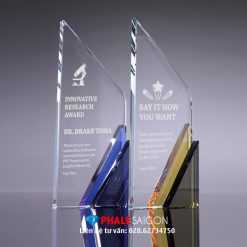Biểu trưng pha lê khen thưởng, kỷ niệm chương tôn vinh cao cấp, kỷ niệm chương vinh danh, quà tặng tri ân, kỷ niệm chương giá rẻ được làm từ pha lê trong, phối thêm các màu khác theo yêu cầu, nội dung khắc hoặc in trực tiếp. Biểu trưng pha lê khen thưởng có kích thước, mẫu mã rất đa dạng, phù hợp vinh danh, khen thưởng trong các sự kiện.